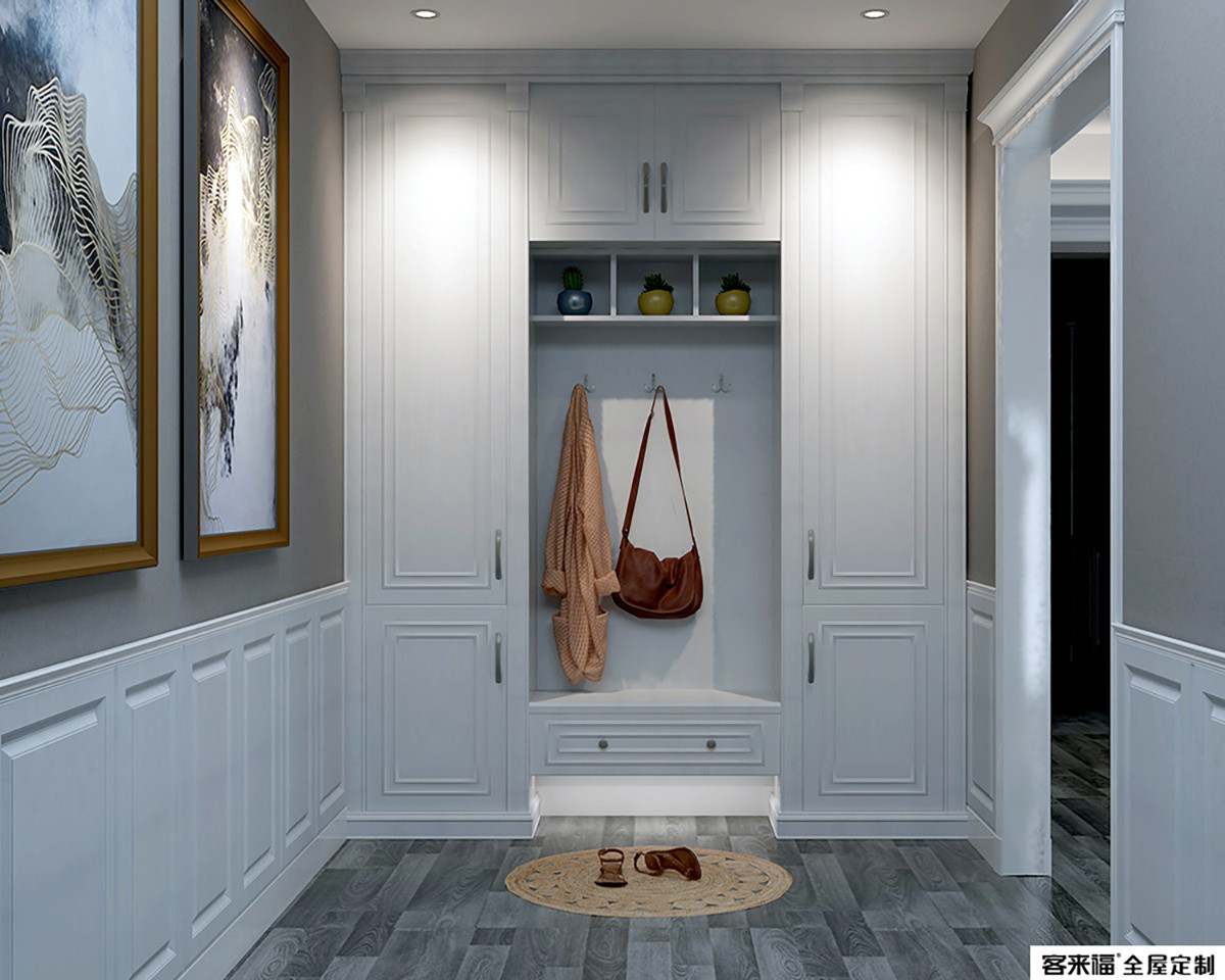 The combination of the bedroom and the cloakroom enlarges the storage function, and the combination of natural wood color and warm white is fresh and natural.