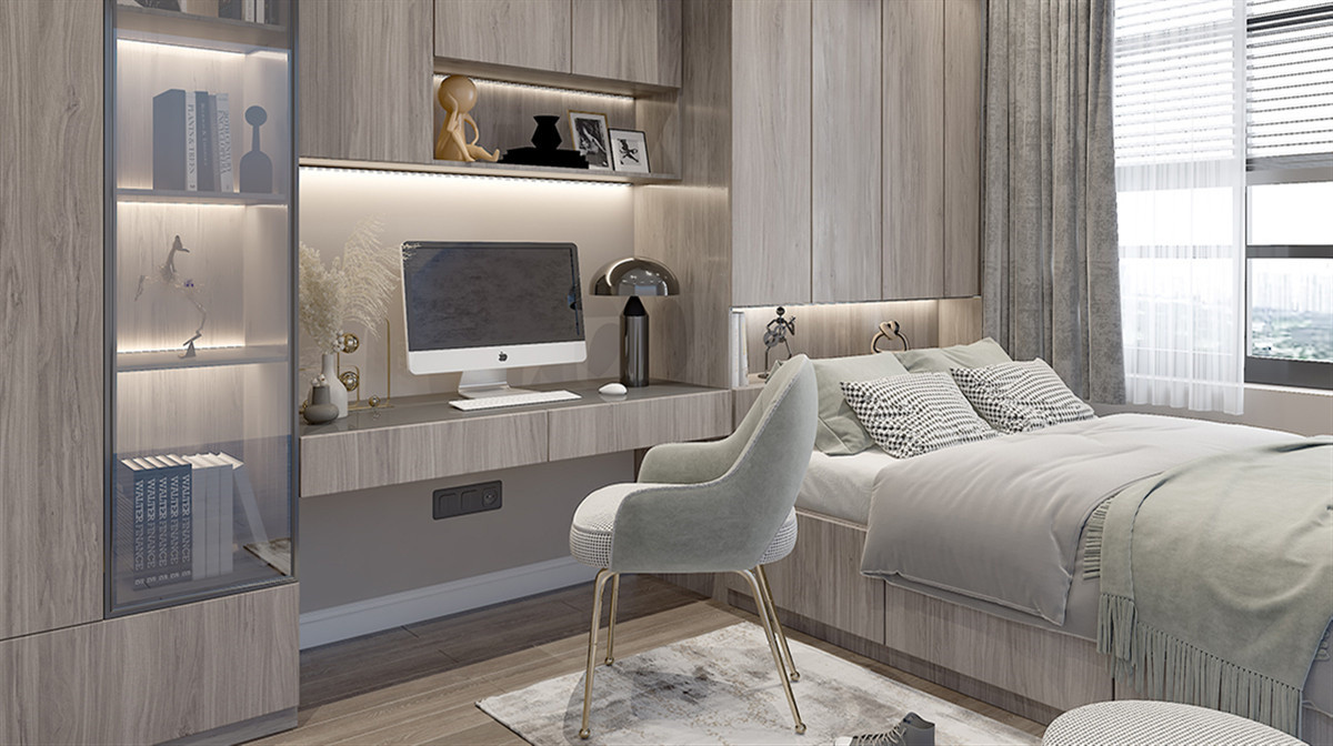 Simple color matching makes the Jinyu Mantang series. The unique style brings the concept of light luxury to the extreme. The wood-colored board finishes abandon complex ideas, and are as simple as they are true to the world. The design of the room also looks more seductive because of this concept.
