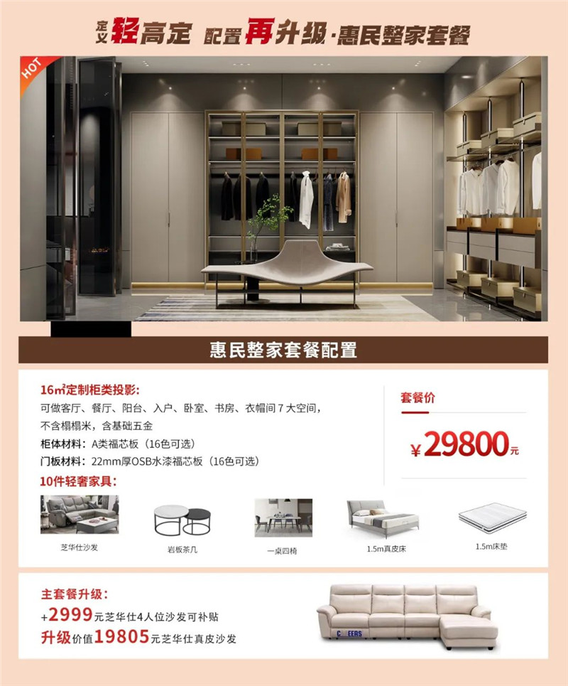 而“配置再升级”这一点,350vip浦京集团家居也落实在套餐中。在针对不同需求的家庭制定「全屋整家套餐」及「惠民整家套餐」时,350vip浦京集团还分别对套餐进行配置升级的选项。