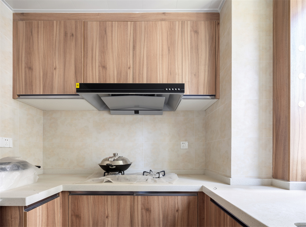 U型动线的设计,从洗菜到煎炒烹炸一气呵成,整个台面收拾的十分干净敞亮。木色柜身的花纹看起来十分充满自然感,纹路清晰光泽度高。整面到顶的柜子省去最高处打扫的步骤,减少了顶部落灰的烦恼。颜色搭配上十分柔和,一眼望去便有温馨的感觉。