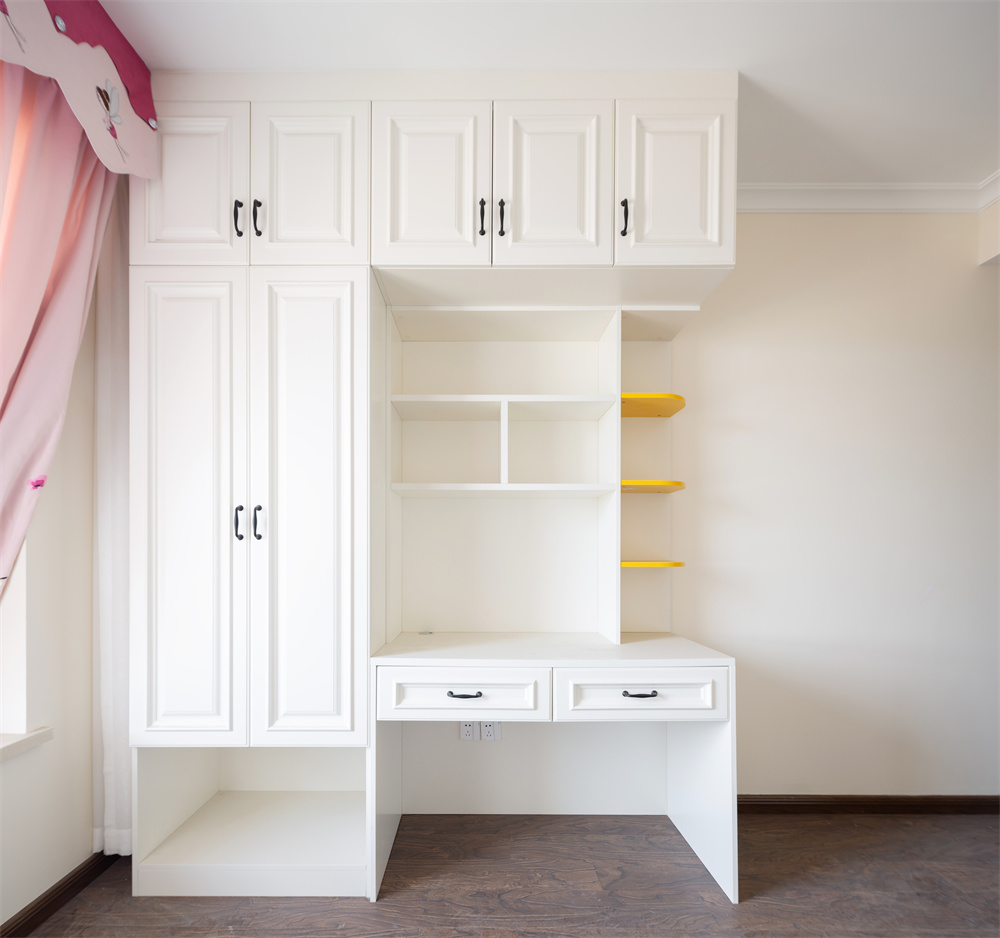 在设计的过程中考虑到儿童房的特点,在把手处做了圆滑包边的设计,避免在打开柜子的过程受到伤害,并且柜身表面十分光滑,拐角处用半圆形的设计可最大限度上避免孩子出现磕碰的情况,为孩子今后的成长保驾护航。