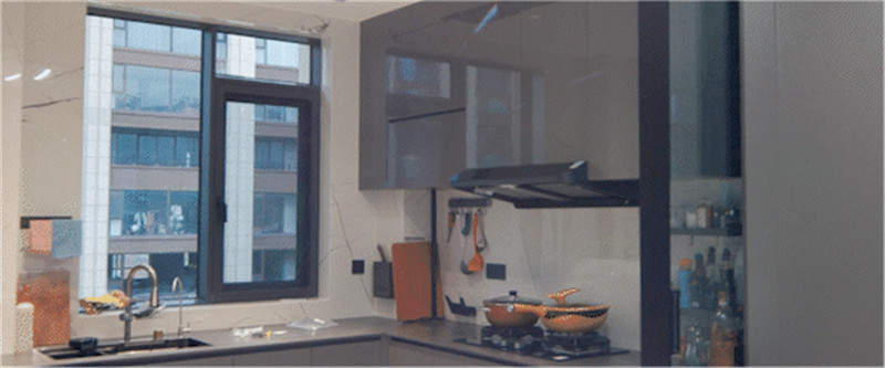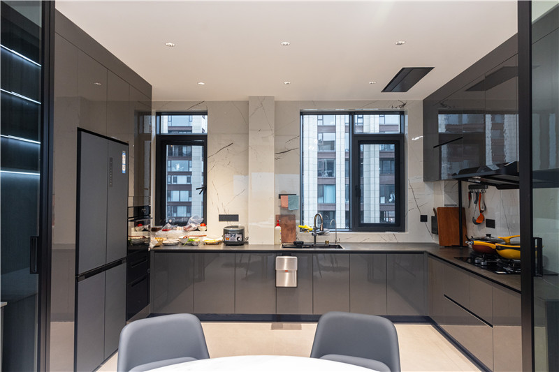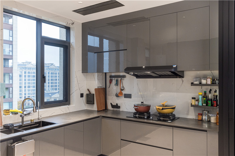 厨房U型构造,根据墙体布局而建,洗切烹盛的动线提升便捷度。