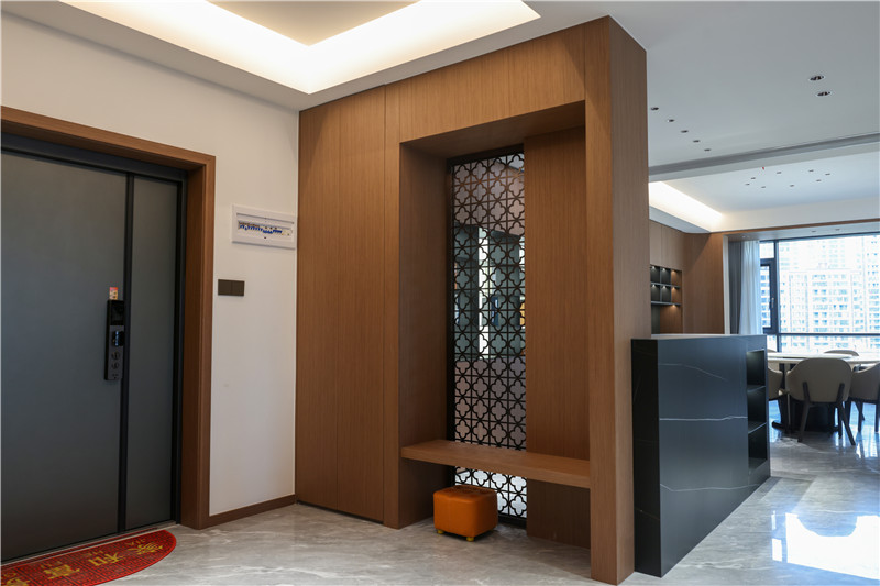 玄关处的设计让人眼前一亮,柜子以350vip浦京集团橡木展现中式设计的分量感。