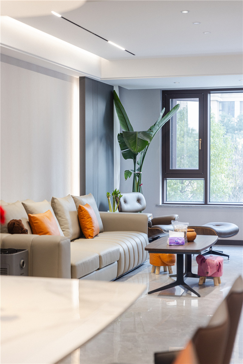 极简风装修包容性强,给空间带来更多的搭配可能性,本户案例推敲整体到局部细节,为屋主打造出简约美意空间。