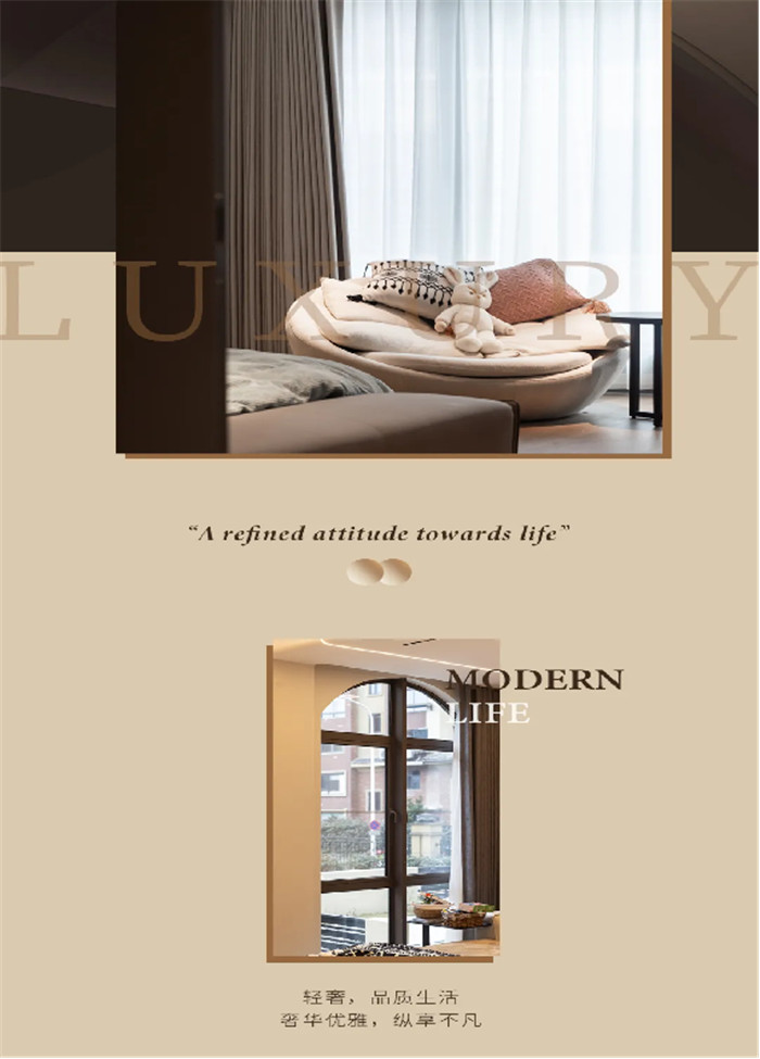 本案以现代轻奢风,共同演绎低调的奢华,将生活美学巧妙融入空间之中,让身心得以舒展和自由呼吸,在奢居的尺度中诠释着关于生活的艺术与美好。