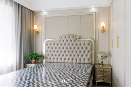 主卧木门和衣柜延续水漆茶白色调,与空间和谐统一,卧室空间更干净整洁。精巧的古铜色拉手点缀,让整个空间显得大气十足。