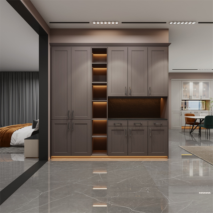 巧妙的空间设计与酒柜相互融合,以人为中心的社交空间,⽆论是独自放松,还是举办派对的场合,都可以完美应对,轻松愉悦的⽣活享受,满足高品位⼈群的生活需求。 不管你和家⼈是否爱喝酒,家⾥是不是总会放上几瓶酒?而且还喜欢把美酒放在显眼处,展示给自己或亲朋好友!