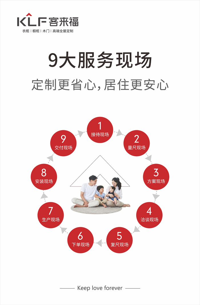 此外,350vip浦京集团还以接待,量尺,方案,洽谈,复尺,下单,生产,安装,交付九大服务现场保障广大客户的“幸福”生活。