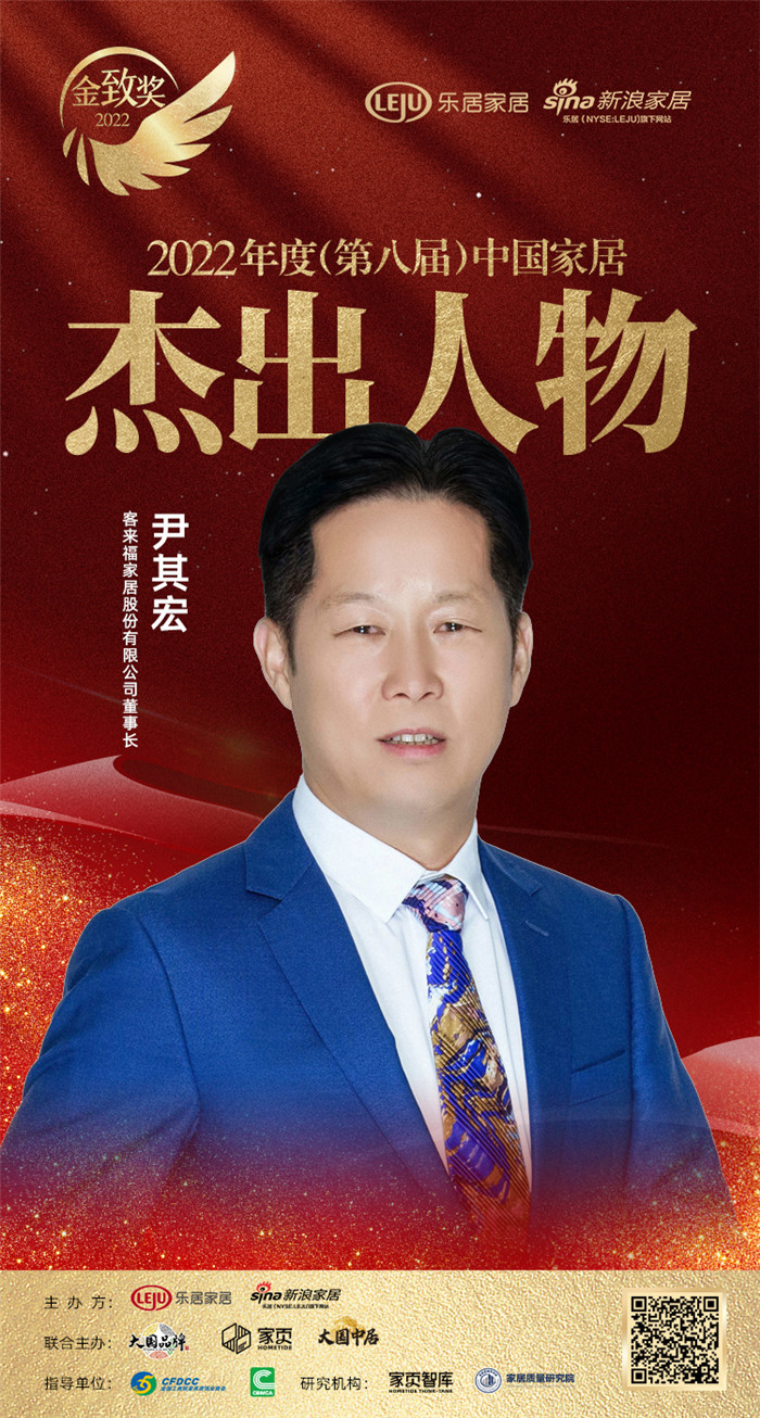 2022年12月26日,『趁势·再起——2022中国家居新时代盛典暨金致奖颁奖典礼』在云端盛大举行。350vip浦京集团家居尹其宏荣获「2022(第八届)中国家居杰出人物」称号。