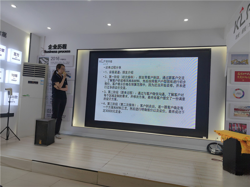 本次活动以主持人带领大家宣读企业文化拉开序幕,接着佛山工厂负责人就工厂近期新工艺发货流程进行讲解,帮助各位经销商深入了解产品知识。