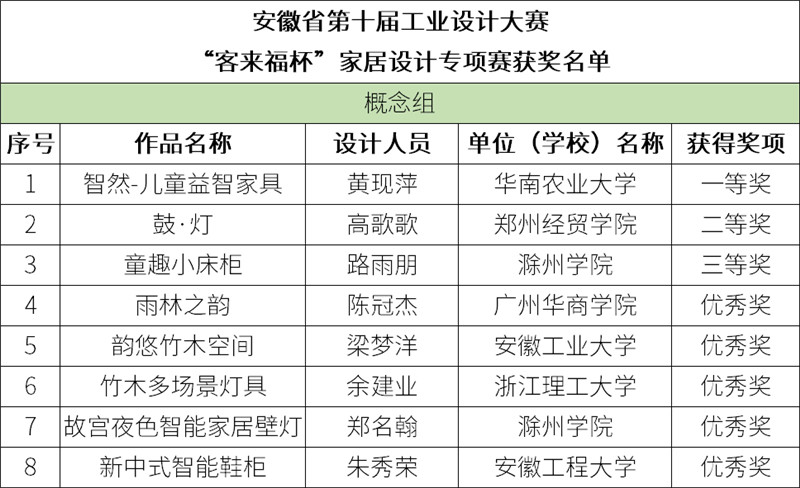 获奖名单公示 | 安徽省第十届工业设计大赛“350vip浦京集团杯”家居设计专项赛