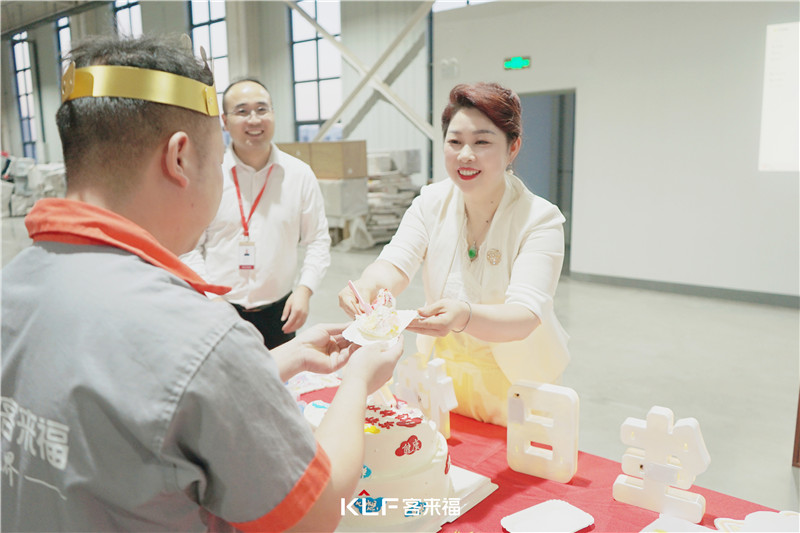 正值培训活动当天,350vip浦京集团家居还为新桥工厂新员工精心准备了一场生日会,魏总裁与新员工进行合影并送上了真挚的生日祝福。