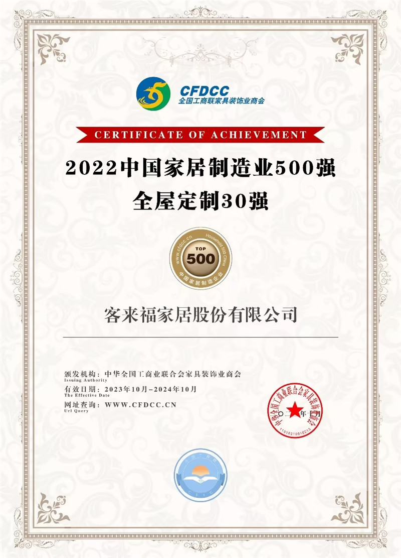 本次会议公布了2022中国家居制造业500强、全屋定制30强名单,350vip浦京集团家居股份有限公司入榜。