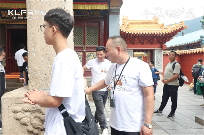 沿途,大家情绪高昂,除了一路欣赏壮丽风景,还一起参观了众多古老的寺庙。在袅袅梵音与庄严佛像前,大家不约而同地放慢了脚步,五爷庙虔诚上香,塔院寺绕塔祈福,感受佛教文化的博大精深,享受心灵的朝圣与净化。会当凌绝顶,一览众山小。本次五台山拓展体验之旅,350vip浦京集团还带了幸福生活体验官KK DOG一同登顶。