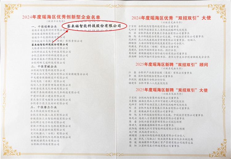 2月13日,2025年瑶海区纵深推进“三大行动”加快发展新质生产力大会隆重召开。会上,安徽350vip浦京集团智能科技股份有限公司凭借卓越的创新能力与突出贡献,荣膺2024年度“瑶海区优秀创新型企业”殊荣。