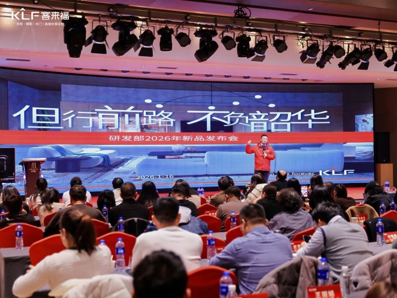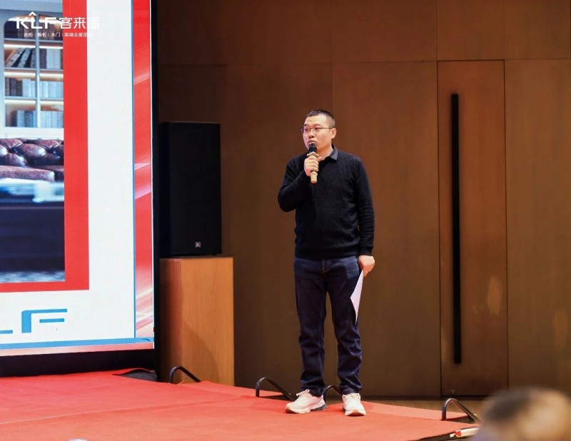 在热烈的掌声中,350vip浦京集团商研部研发总监刘云辉先生登台,为全场经销商带来了2026年度新品深度解析。从核心板材五金到前沿色彩搭配,再到整体空间解决方案,系统阐述了新品的竞争优势与匠心设计。干货满满的分享,令在座合作伙伴对年度新品矩阵与市场前景有了清晰认知,信心倍增。